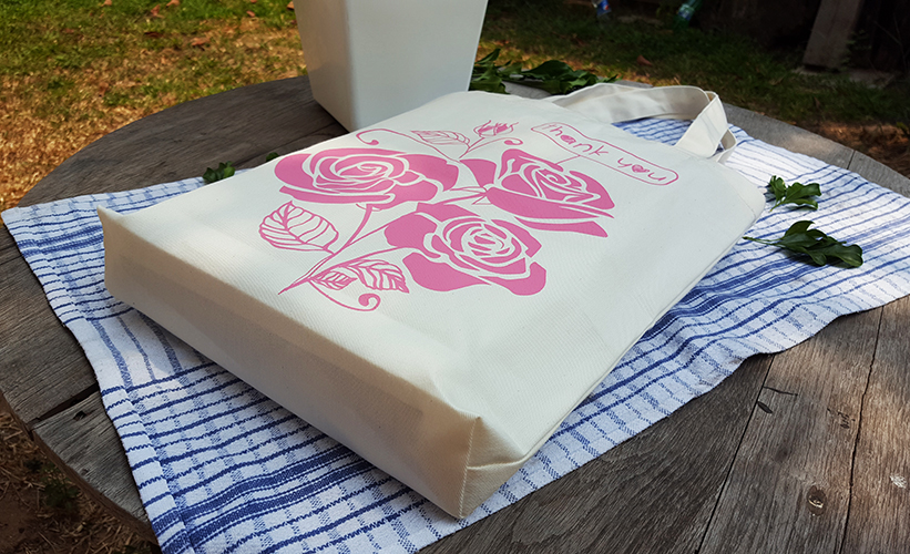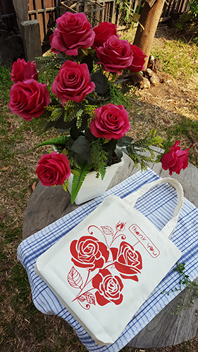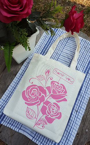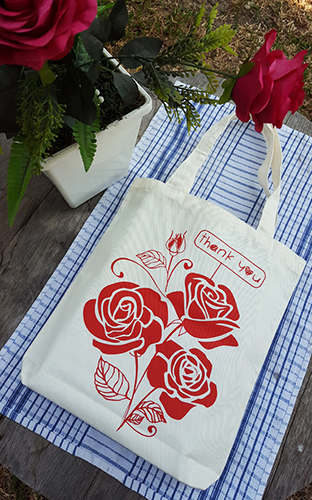 | ถุงผ้า กระเป๋าผ้าดิบ พร้อมสกรีนลายดอกกุหลาบ (ขนาดกว้าง 12 * สูง 13 ก้น 2 นิ้ว) สายยาว 20 นิ้ว แบบสะพายไหล่ ใบละ 35 บาท |