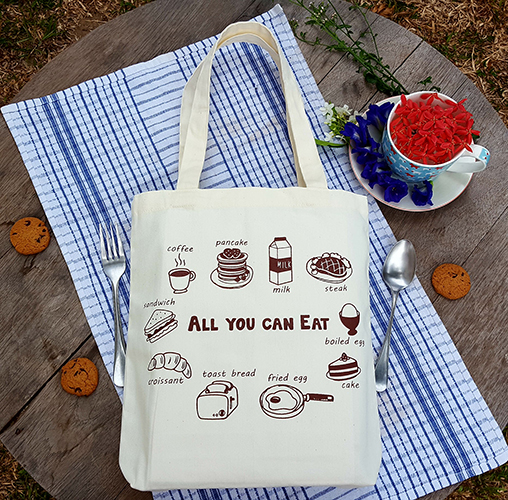 | กระเป๋าผ้า ถุงผ้าดิบ แบบสกรีนลายของทางร้าน |