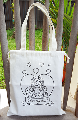| ถุงผ้า กระเป๋าผ้าดิบ พร้อมสกรีนลาย I love mom (ขนาดกว้าง 12 * สูง 14 นิ้ว) แบบมีเชือกสีขาวรูดที่ปาก สายสะพายไหล่ยาว 20 นิ้ว ใบละ 45 บาท |