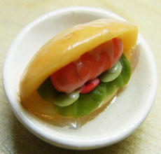 ขนมปังไส้กรอกมายองเนส 2 ชิ้นพร้อมผักกาด |