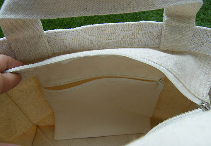 กระเป๋าลับภายในกระเป๋าผ้าดิบลูกไม้ มีซิป ใส่เงิน มือถือ ได้เอนกประสงค์